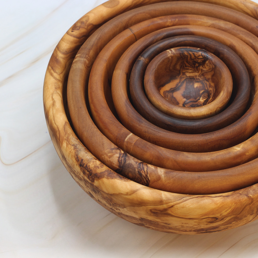 Because each olive wood bowl is 100% handmade, natural variations in grain, color, and shape are expected and celebrated. These variations highlight the organic character of the wood and ensure that every bowl and set is truly one of a kind.