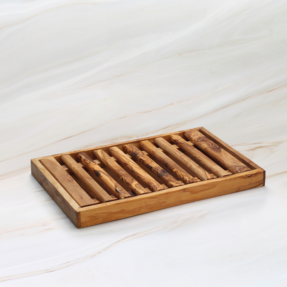 This olive wood bread cutting board with crumb tray is designed to make everyday bread slicing effortless and tidy.