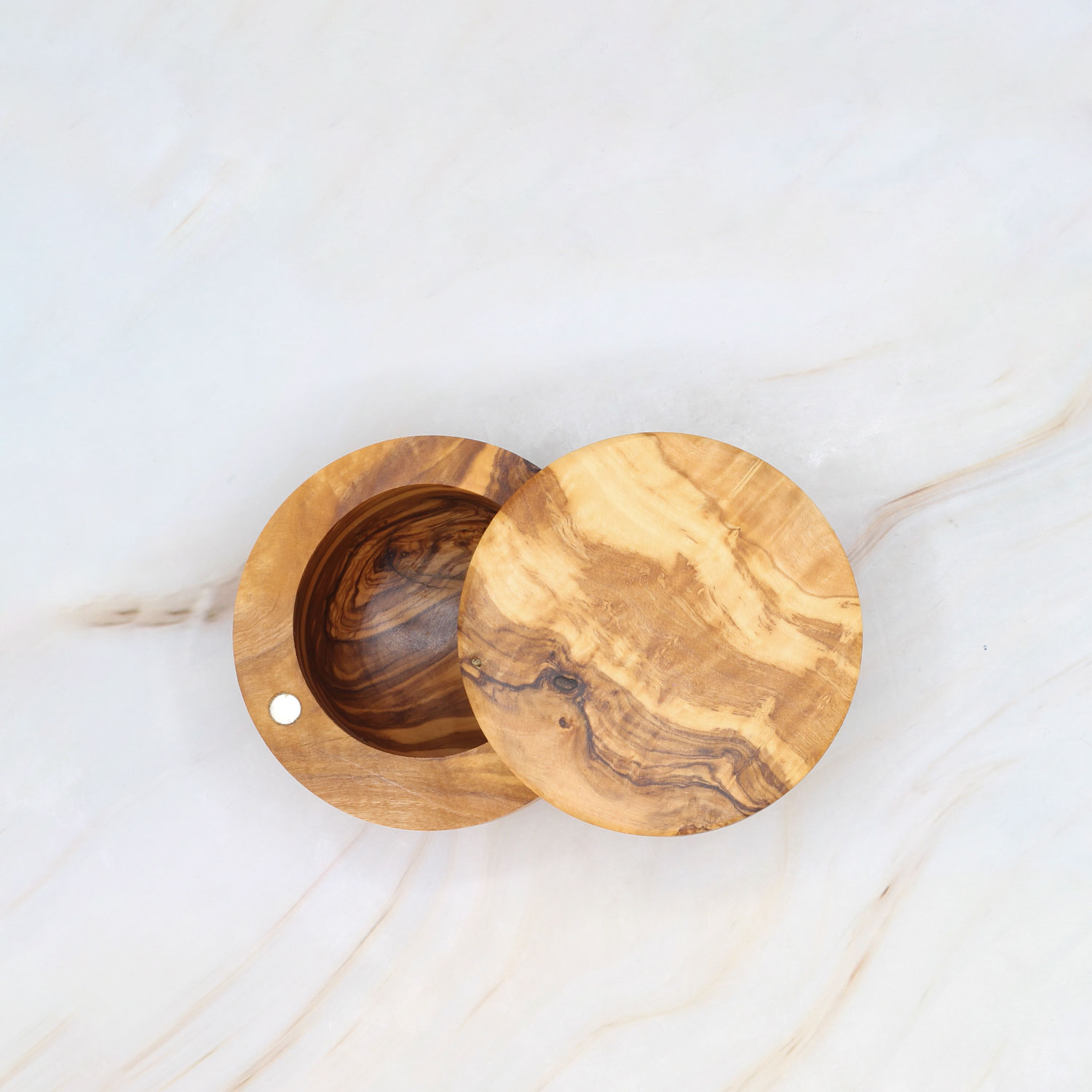 Olive Wood Salt Cellar with Magnetic Lid – Elegant Mediterranean Storage for Everyday Cooking