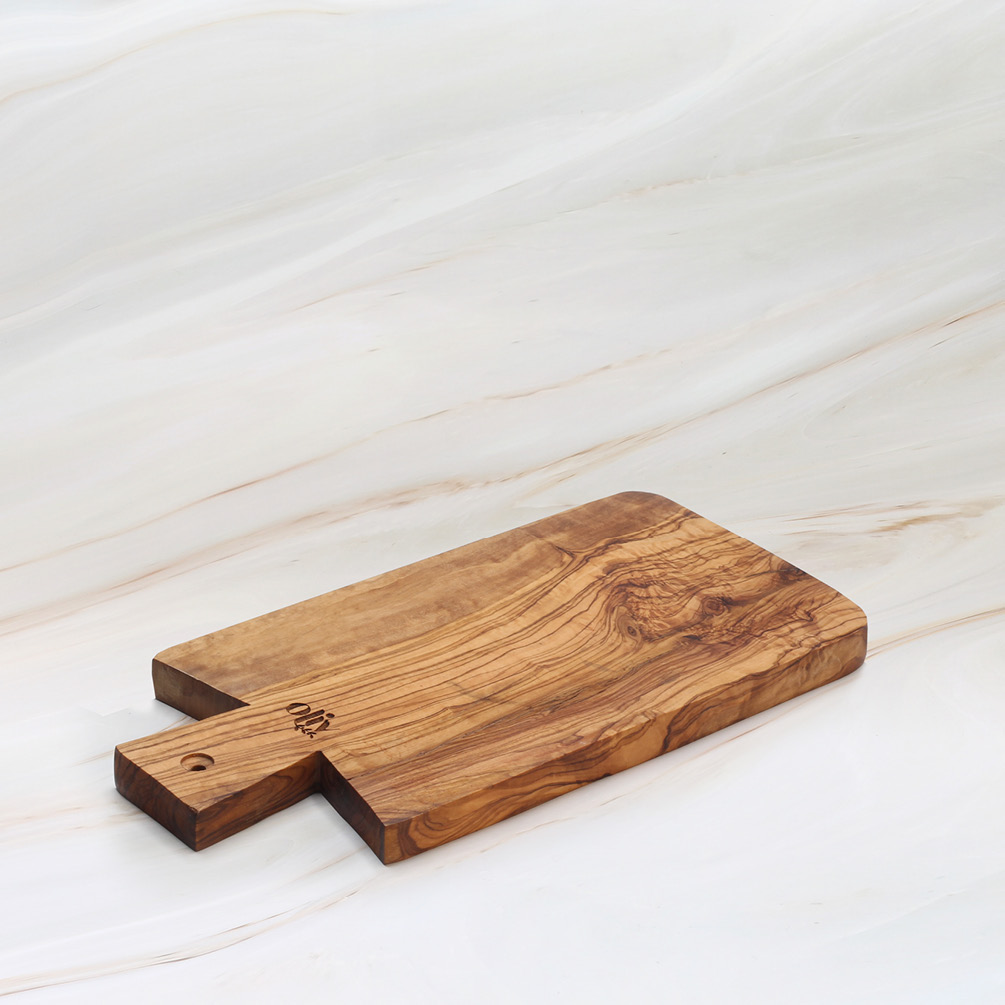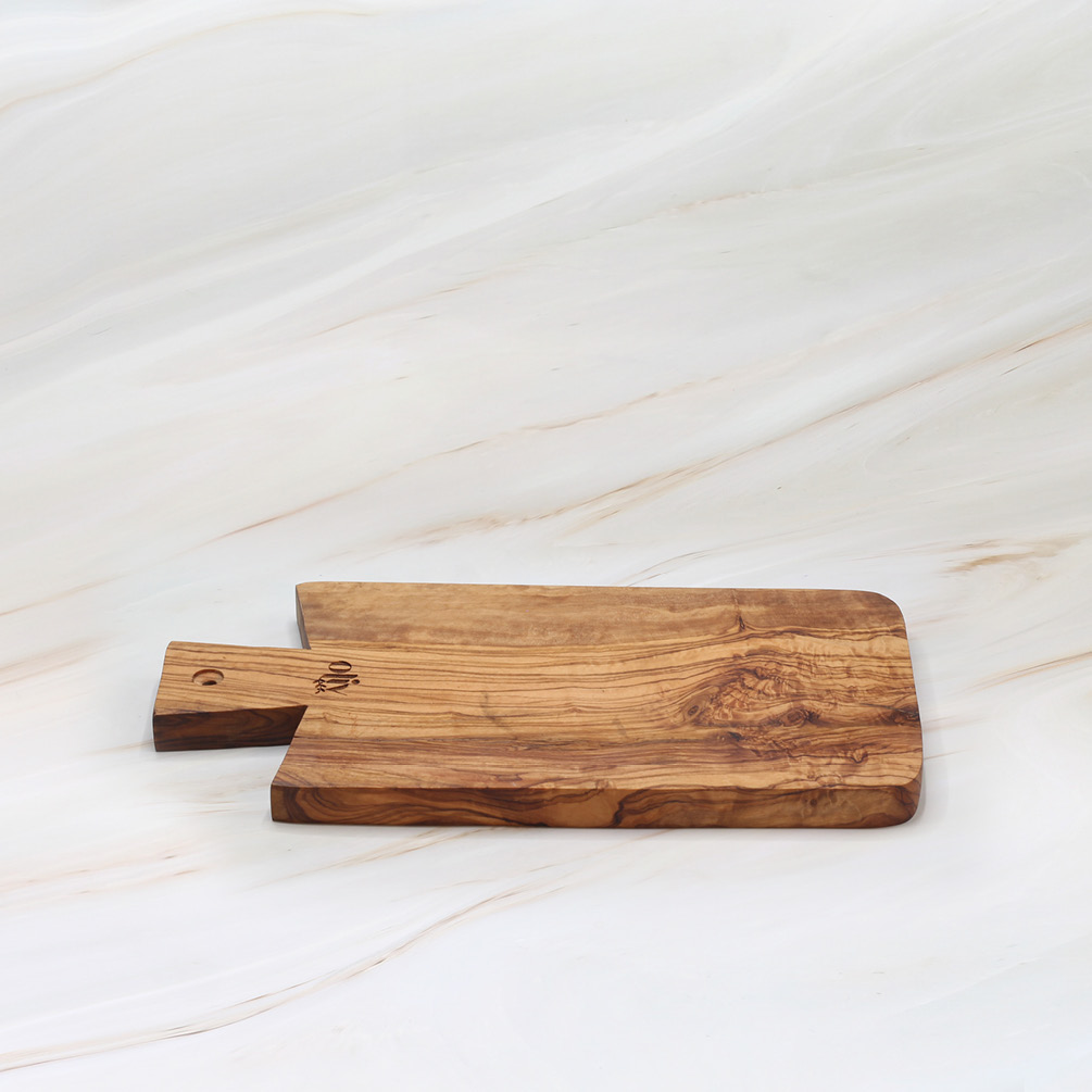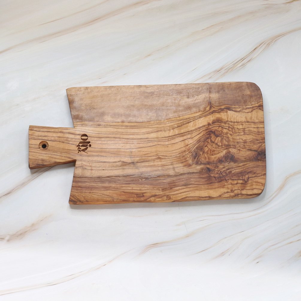 Straight Olive Wood Cutting Board with Handle – Wooden Board for Prep & Serving